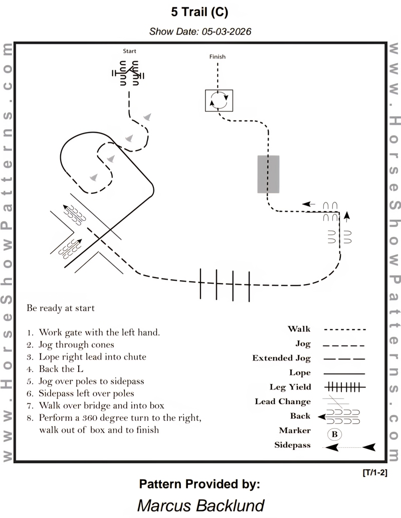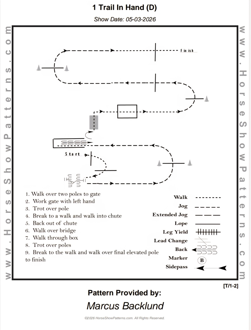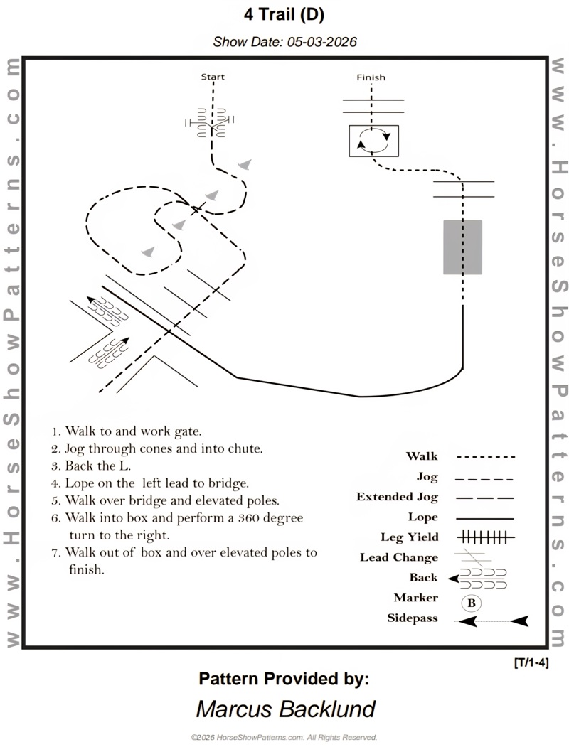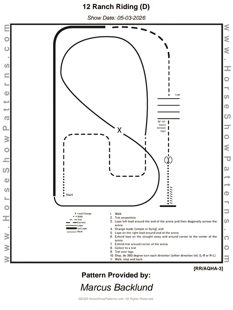 | 6 | Ranch Trail Beginner | Skritt och trav OBS: Där det står galopp i mönstret så är det trav istället! | Beginner | Mönster | 150,- | 100,- | 0 |