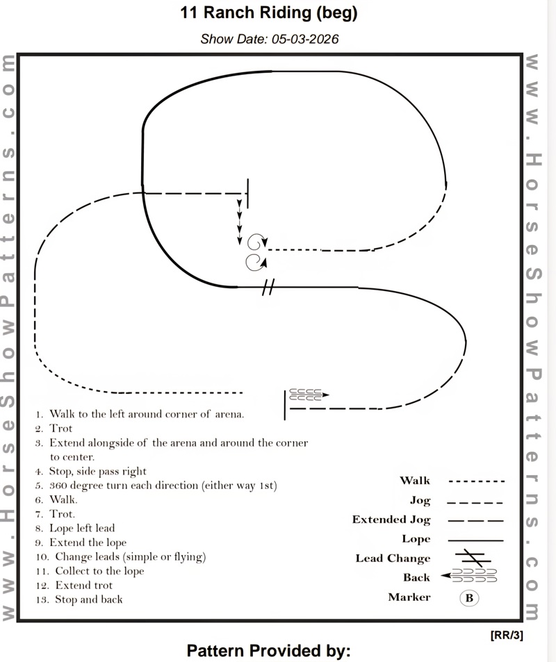 | 11 | Ranch Riding Beginner | Skritt och trav Galoppen i mönstret ersätts av trav! | Beginner | Mönster | 150,- | 100,- | 0 |