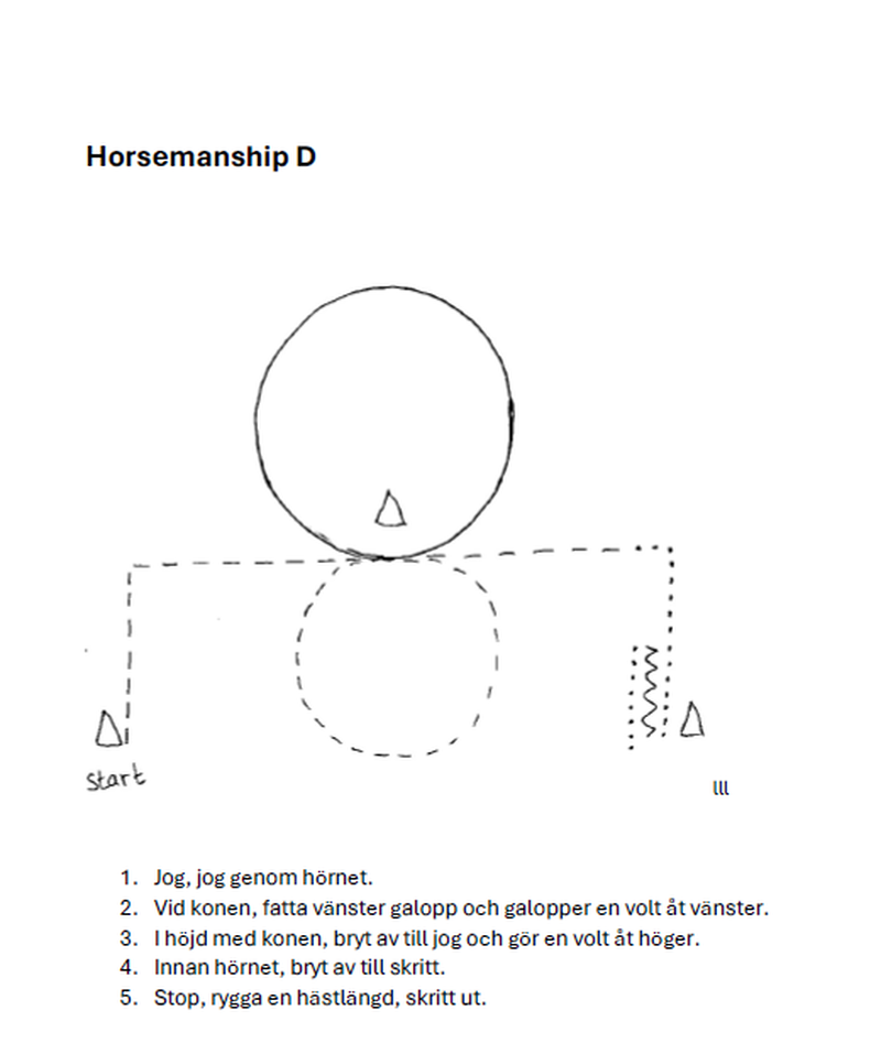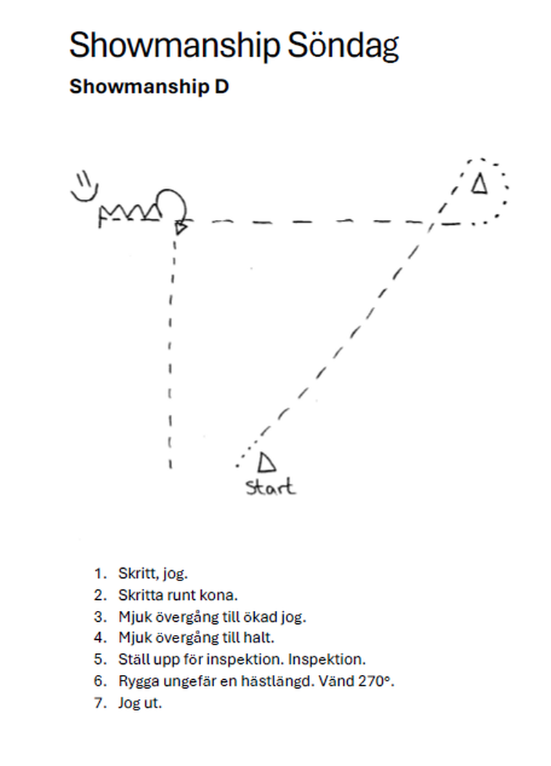| 26 | Freestyle Reining D Open | Eget mönster. Pris till bästa utklädnad! Det är ok utan huvudlag, en eller två händer, byta hand etc. Ange så fort du kan vilken musik du vill ha... t ex låt på spotify eller egen fil så vi kan få ordning på allt innan tävlingen :-) Obligatoriska rörelser är minst 2 spins till höger och minst 2 spins till vänster, minst 2 stops. (Exempel se reiningmönster 12). (Du startar antingen D-nivå eller C-nivå, inte båda). | 0 | |||||||||||||||||||||||||||