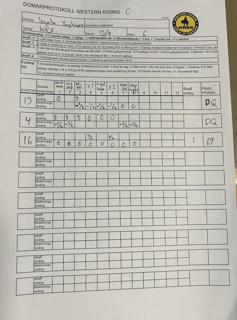 | 11 | Western Horsemanship C | Klubbmästerskap | C | 1 | |||||||||||||||||||||||||||||