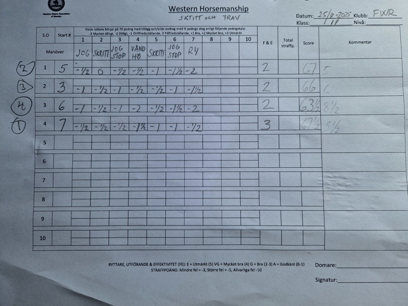 | 11. | Western Horsemanship skritt & trav | 4 |