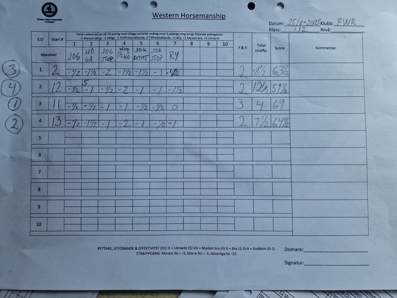 | 11. | Western Horsemanship skritt & trav | 4 |