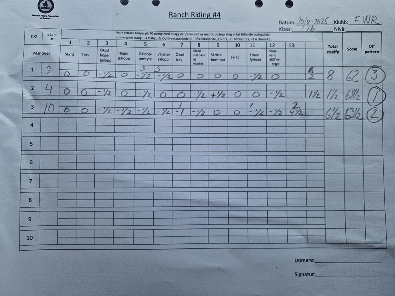 | 13. | Western Riding skritt & trav | 3 |