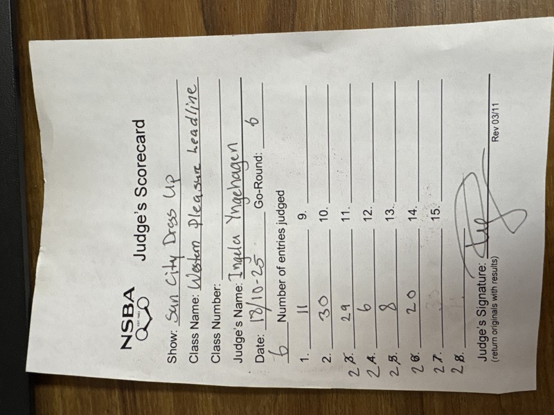 | 11. | Western Pleasure Leadline Beginner | 6 |