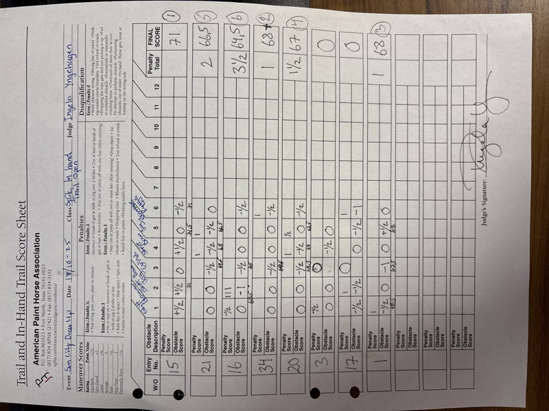 | 12. | Western Pleasure Walk & Trot | 1 |