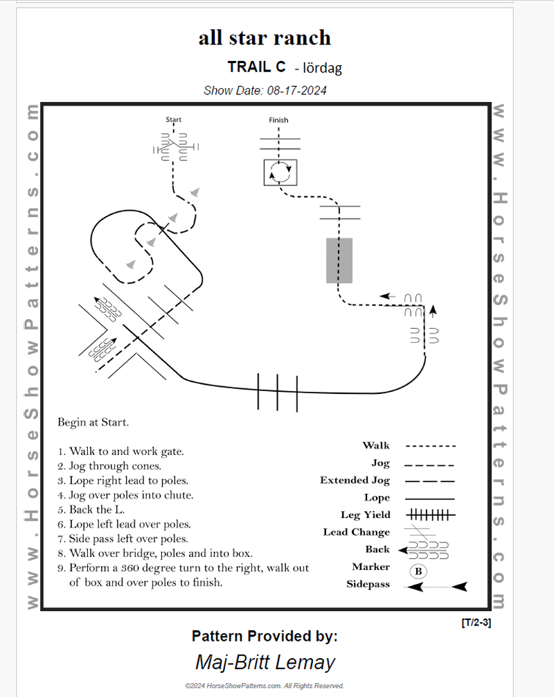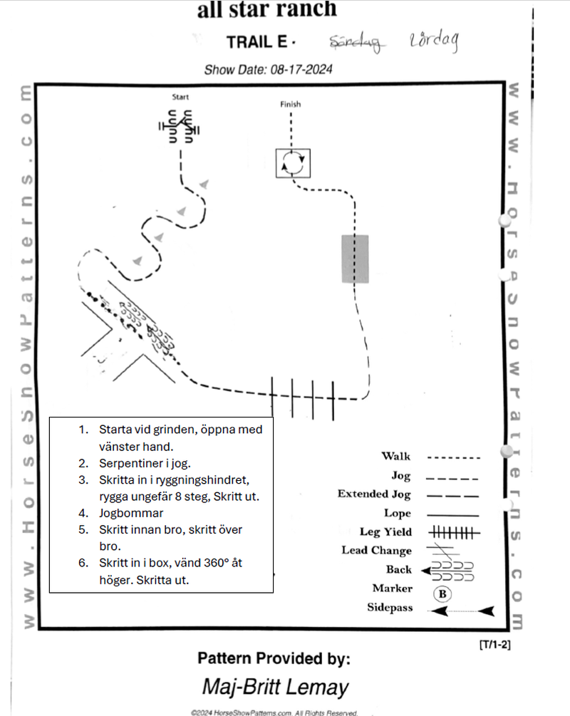 | 9 | Ranch Trail D Open | PS. Du blir inte bedömd på hur bra du kan kasta lasso :-) DS. | Mönster | 150,- | 120,- | 2 | |||||||||||||