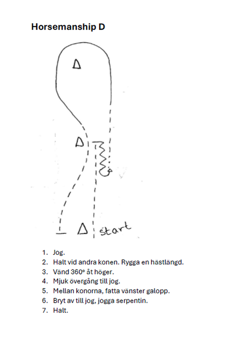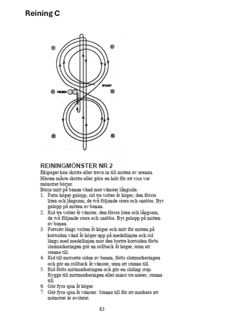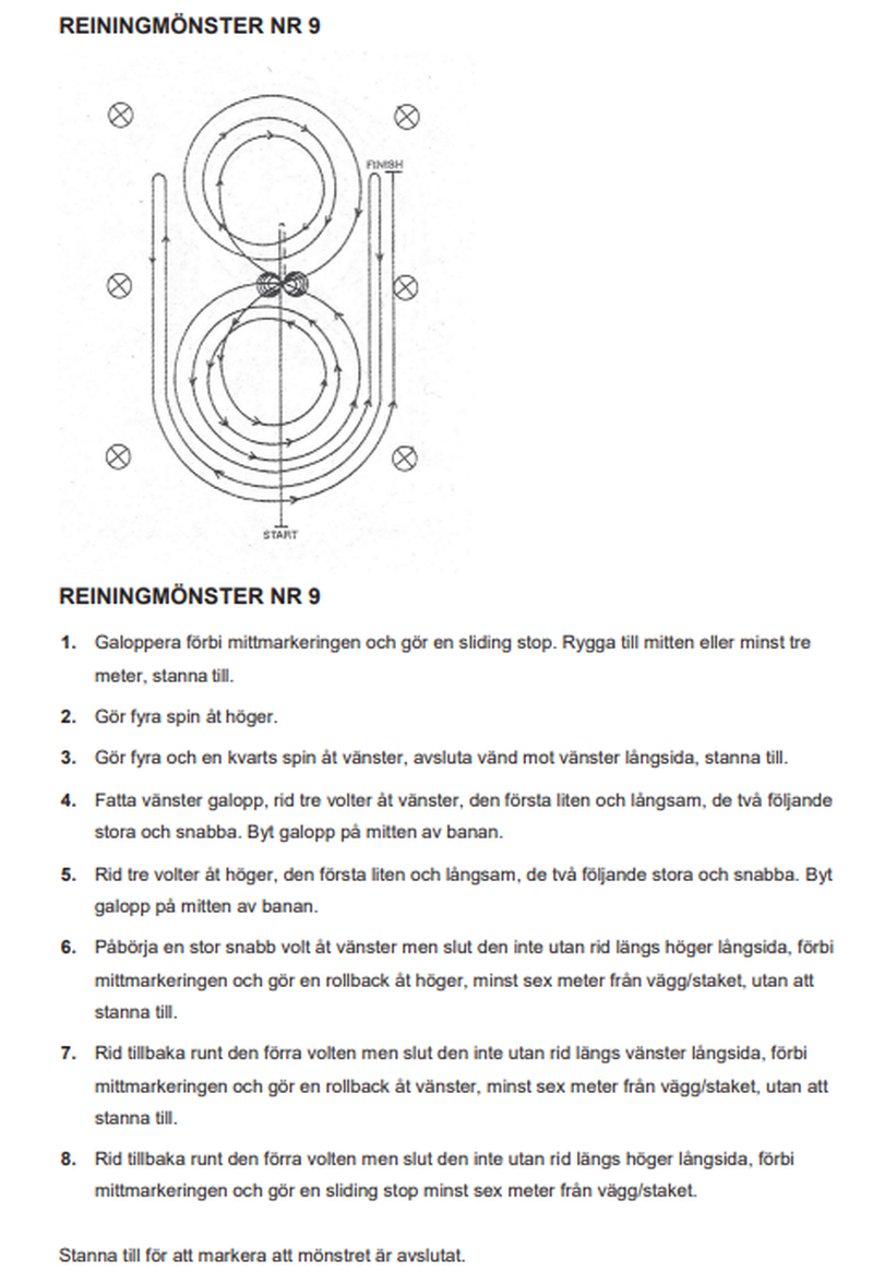 | 26 | Freestyle Reining D Open | Eget mönster. Pris till bästa utklädnad! Det är ok utan huvudlag, en eller två händer, byta hand etc. Ange så fort du kan vilken musik du vill ha... t ex låt på spotify eller egen fil så vi kan få ordning på allt innan tävlingen :-) Obligatoriska rörelser är minst 2 spins till höger och minst 2 spins till vänster, minst 2 stops. (Exempel se reiningmönster 12). (Du startar antingen D-nivå eller C-nivå, inte båda). | 50,- | 50,- | 0 | ||||||||||||||